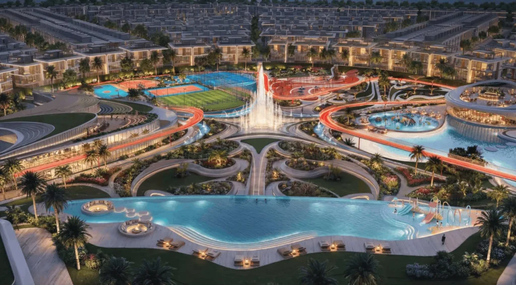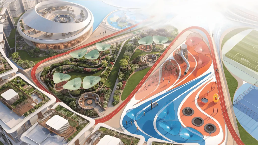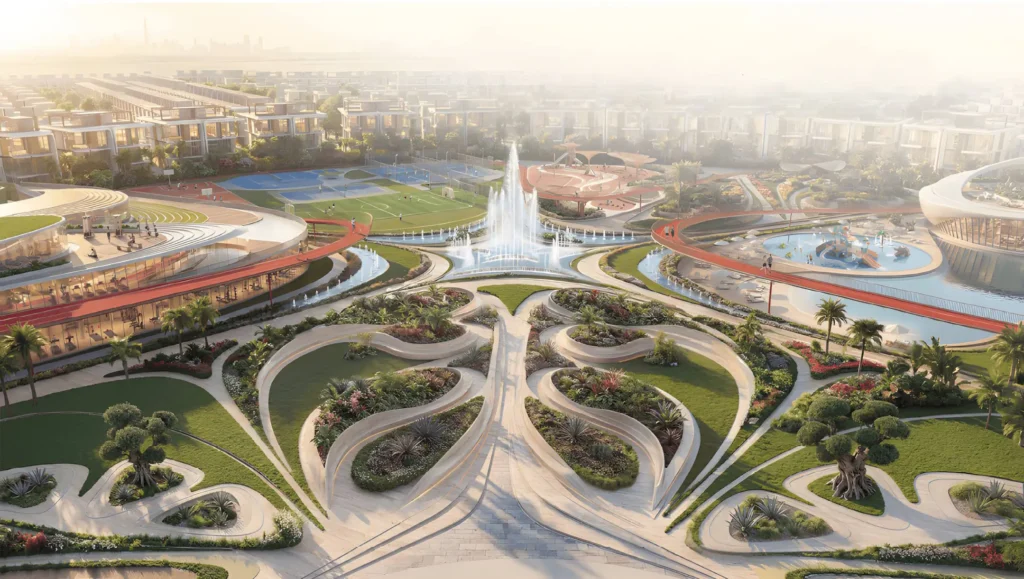 GreenZ by Danube introduces the developer’s first townhouse & villa community in Dubai, bringing fully furnished 3–5BR homes to the Academic City area of Dubailand. The project is planned as a G+1 residential neighbourhood designed for family living, with approximately 700 homes in the first phase. Its location places residents next to Dubai Silicon Oasis — a major technology district with more than 100,000 residents and entrepreneurs and over 40,000 companies — as well as close to Dubai International Academic City and several international schools. With direct access to Sheikh Mohammed Bin Zayed Road (E311) and Emirates Road (E611), the community combines suburban space with strong connectivity across Dubai.