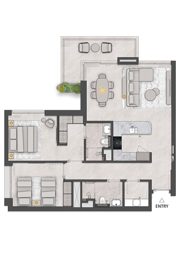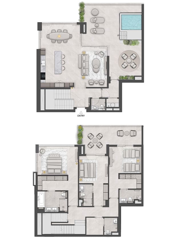 In the first quarter of 2025, the developer presented the second phase of the project comprisinng apartments with 1-3 bedrooms and duplexes with 3 bedrooms. Their area ranges from 678 sq. ft. to 3239 sq. ft.