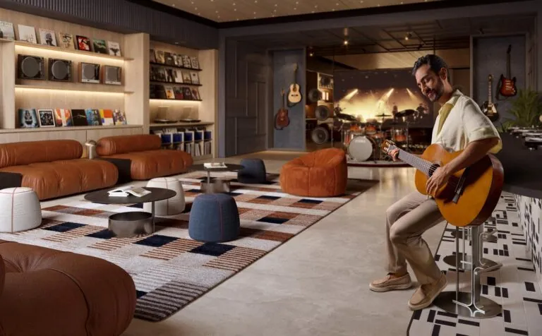A dedicated sound and rhythm studio designed for listening, creating, and rehearsing. This signature space supports creative focus and personal expression as part of everyday living.
