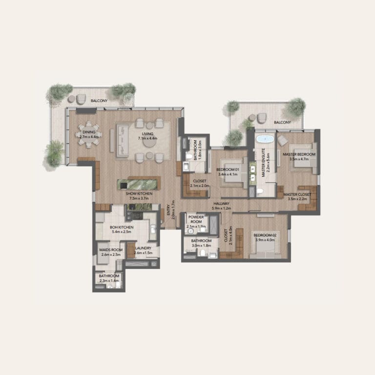 Maravelle Residences provide strong resale potential due to the considerably low density and special positioning within Ghaf Woods. Backed by Majid Al Futtaim, these residences are designed for long-term value and appreciation.