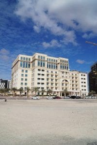 Platinum One is a nine-storey residential complex located in the Dubailand area of Arjan, Dubai. The project was developed by ACW Holdings. Construction of the building began in 2009 and was completed in 2013. There are a total of 284 fully furnished residential units, including studios and one- to two-bedroom apartments that feature luxurious finishes. Properties are equipped with household appliances, free Wi-Fi, and satellite TV.
