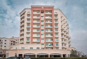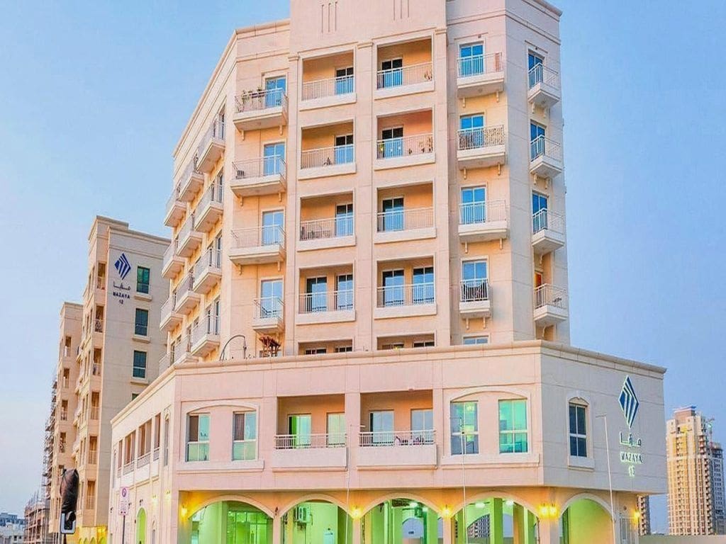 Queue Point is a modern residential complex located in the central part of Liwan, a district of Dubailand. The development consists of 20 medium-rise buildings that range in height from six to 15 floors. The project was developed by Al Mazaya Holding in 2007, and properties include residential and mixed-use units. Residential units include cosy and spacious one- to three-bedroom apartments. Properties differ in configuration and range in size from 650 sq. ft. to 1,800 sq. ft. Apartments have bedrooms, furnished living areas, several bathrooms, separate kitchens with modern equipment, and wide balconies.