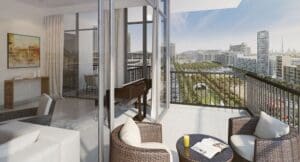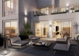 Prices start from AED 839,000 (approximately USD 230,000). 2-bedroom apartments average around 1,324 sq. ft; 3-bedroom apartments average approximately 1,895 sq. ft.
