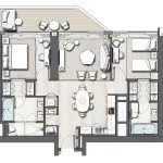 As of Q2 2023, the initial cost for a 1-bedroom apartment in Address Residences The Bay is AED 2.7M (USD 735K), whilst a townhouse is priced at a minimum of AED 13.3M (USD 3.6M).