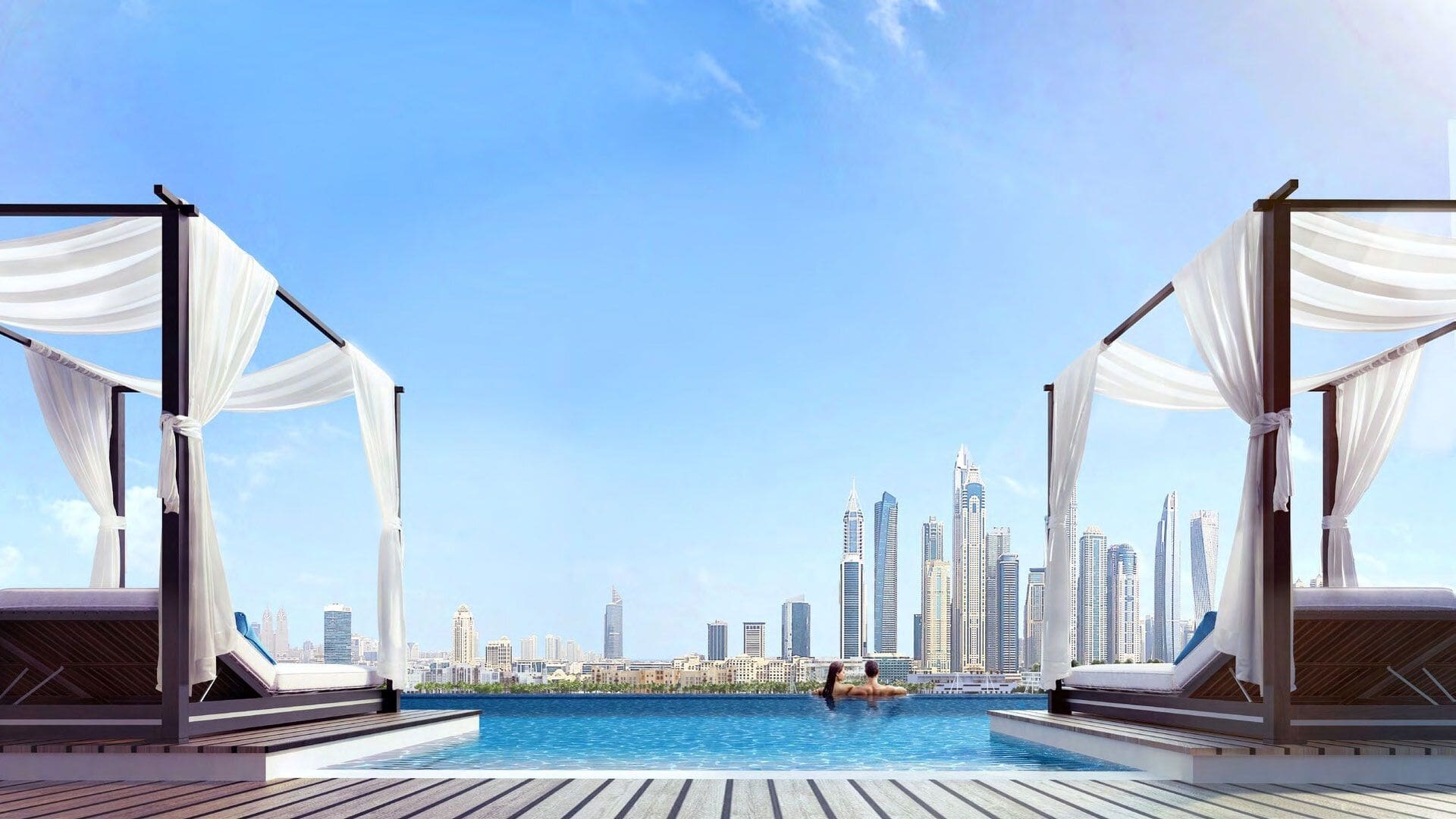 Sunrise Bay is a coastal residential complex consisting of two 26-storey buildings. The structure features a podium connecting the two towers, on which a recreation area with a swimming pool is located. The building belongs to the Emaar Beachfront complex.