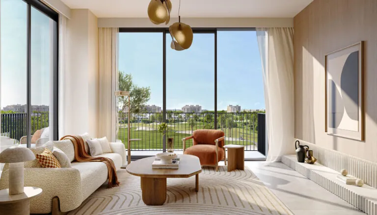 Properties in the complex will be made up of 1–3 bedroom apartments and exclusive 3-bedroom townhouses. The starting price for a residence in Golf Edge — AED 1.2M (USD 326K). The developer offers an 80/20 payment plan.