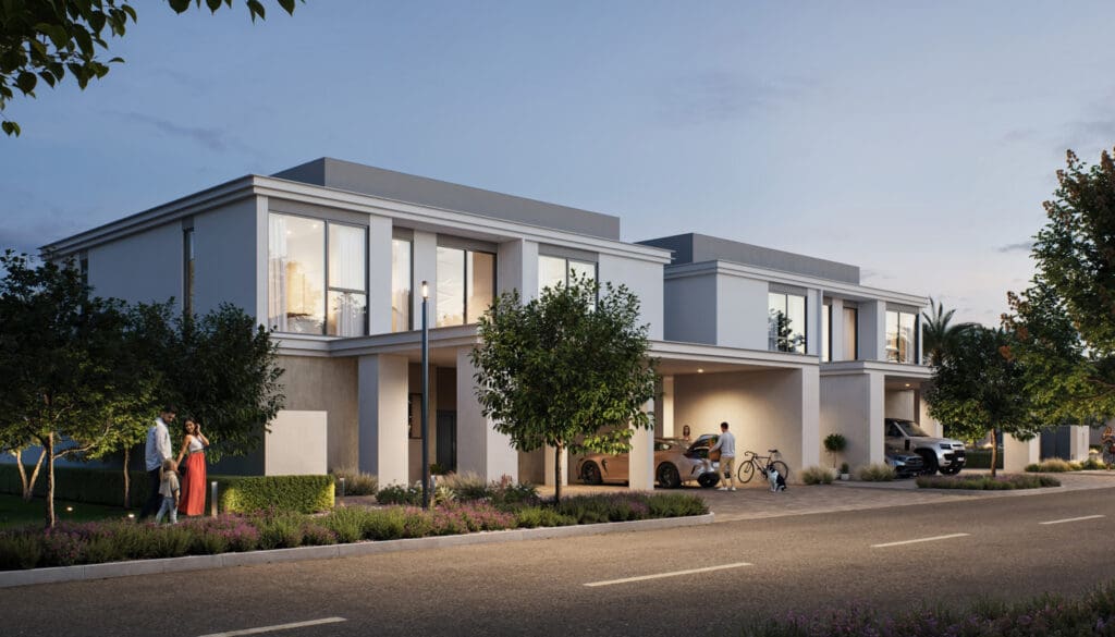 As of 2025, townhouse prices start from AED 3.5M (USD 953K).