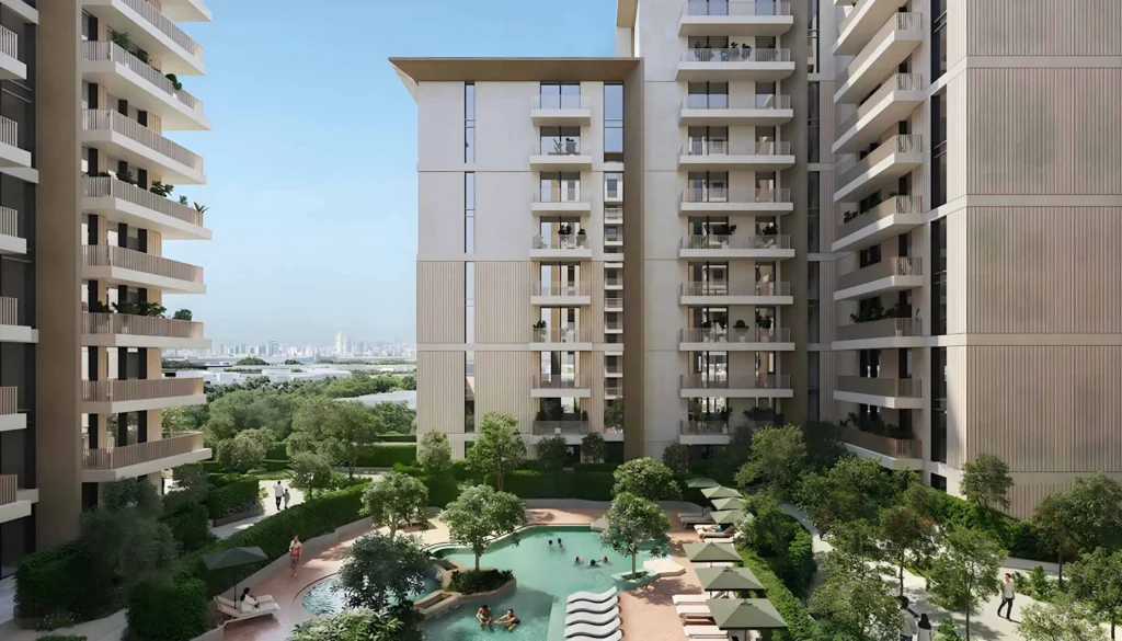 The starting prices at Expo Valley Views by Expo City Dubai begin from AED 1.67M for 1-bedroom apartments, AED 2.499M for 2-bedroom residences, and AED 3.411M for 3-bedroom homes.