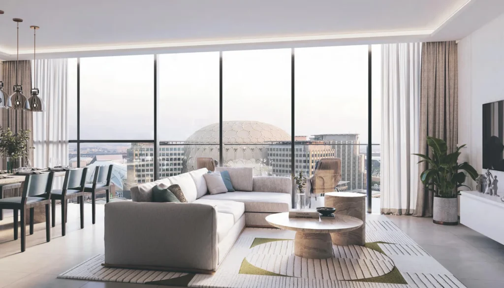 A premium collection of 450 chic 1–4BR apartments and 3BR townhouses, geared toward wellness-driven, sustainable living, can be found in Expo City Dubai's avant-garde Expo Central neighborhood.