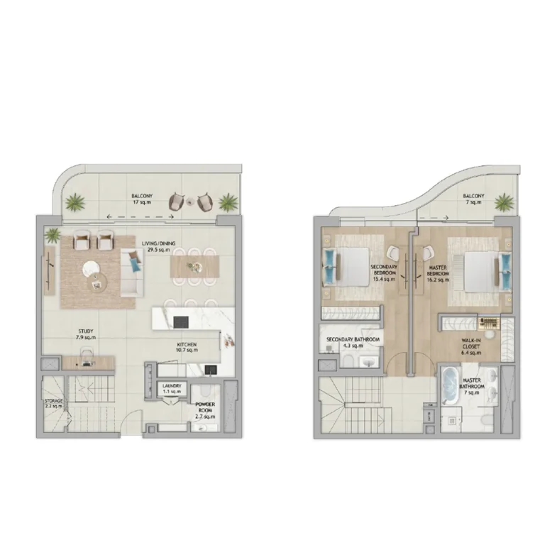2 bedrooms Duplexes