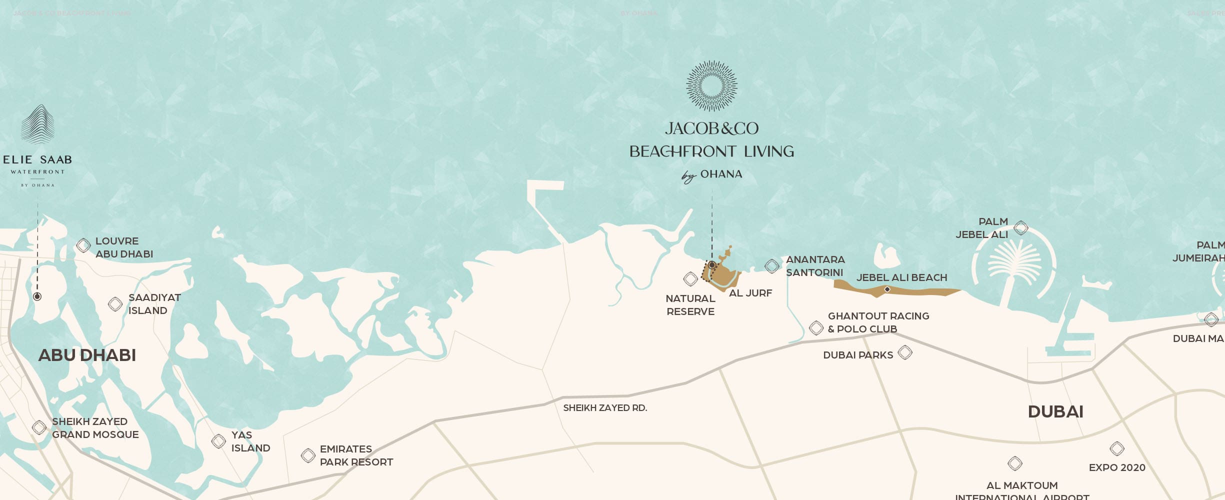 Jacob et Cie. Beachfront Living by Ohana est un futur complexe exclusif qui sera situé à Abu Dhabi. La société de développement leader, Ohana Development, crée ce projet en coopération avec la marque mondiale de bijoux de luxe Jacob & Co. Une superbe collection de résidences de marque sera présentée dans le complexe.