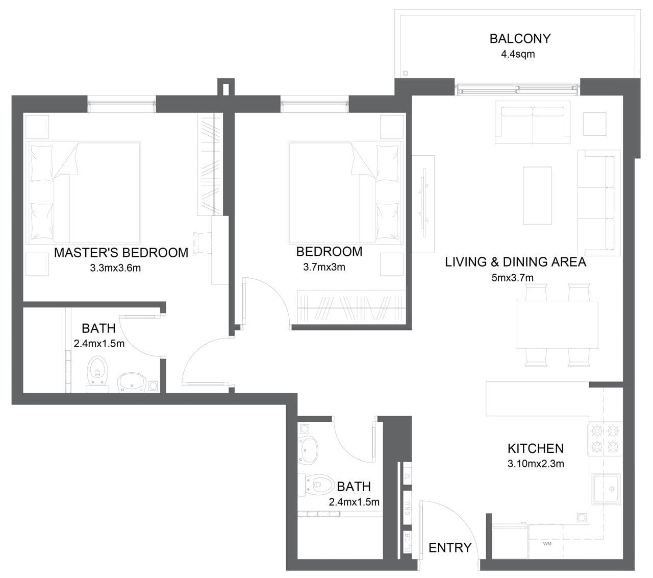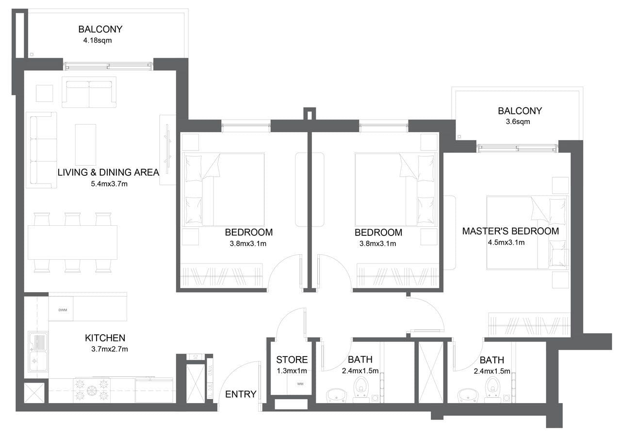 Le nouveau quartier comprendra 1 050 logements. La première phase du projet offrira un choix de 630 résidences aux acheteurs et investisseurs du monde entier, dans 5 bâtiments de petite taille. Les propriétés proposées se composent de studios et d’appartements de 1 à 3 chambres, d’une superficie de 26 à 100m2.