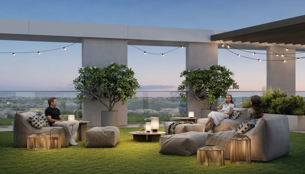 Chacun des trois bâtiments du complexe dispose de superbes terrasses en plein air dotées d'agréables coins salons. Les résidents pourront y passer de superbes soirées en famille ou entre amis, tout en profitant d'une vue panoramique sur la ville et les espaces verdoyants.