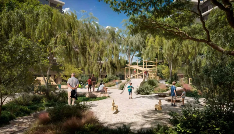 Des piscines intégrées en bordure de forêt créent une oasis de tranquillité où les résidents peuvent se détendre et se ressourcer. Ces piscines offriront une expérience de baignade exclusive tout en étant entourées d'espaces verdoyants naturels et d'arbres Ghaf.