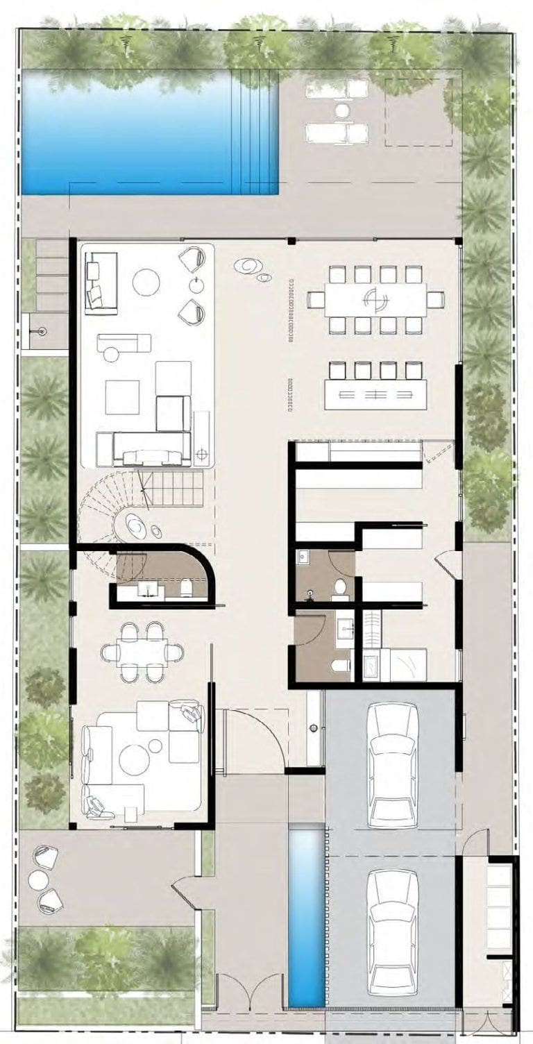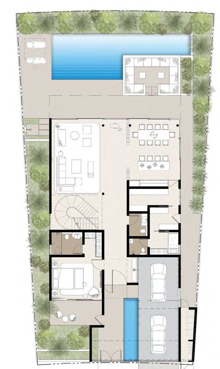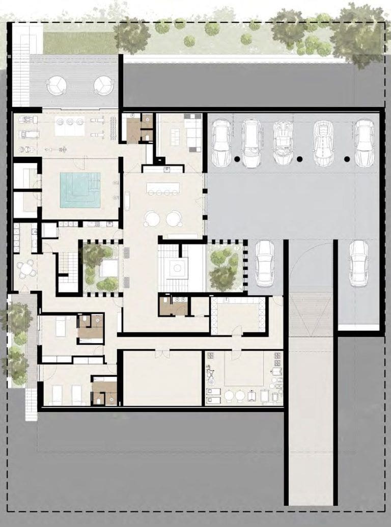 Grâce à la large sélection des aménagements proposés, vous pouvez choisir d'avoir votre propre spa, sauna, cinéma, salle de sport, bibliothèque, bar ou tout ce que vous souhaitez. La solution architecturale originale comprend un large puits de lumière à l'étage supérieur.