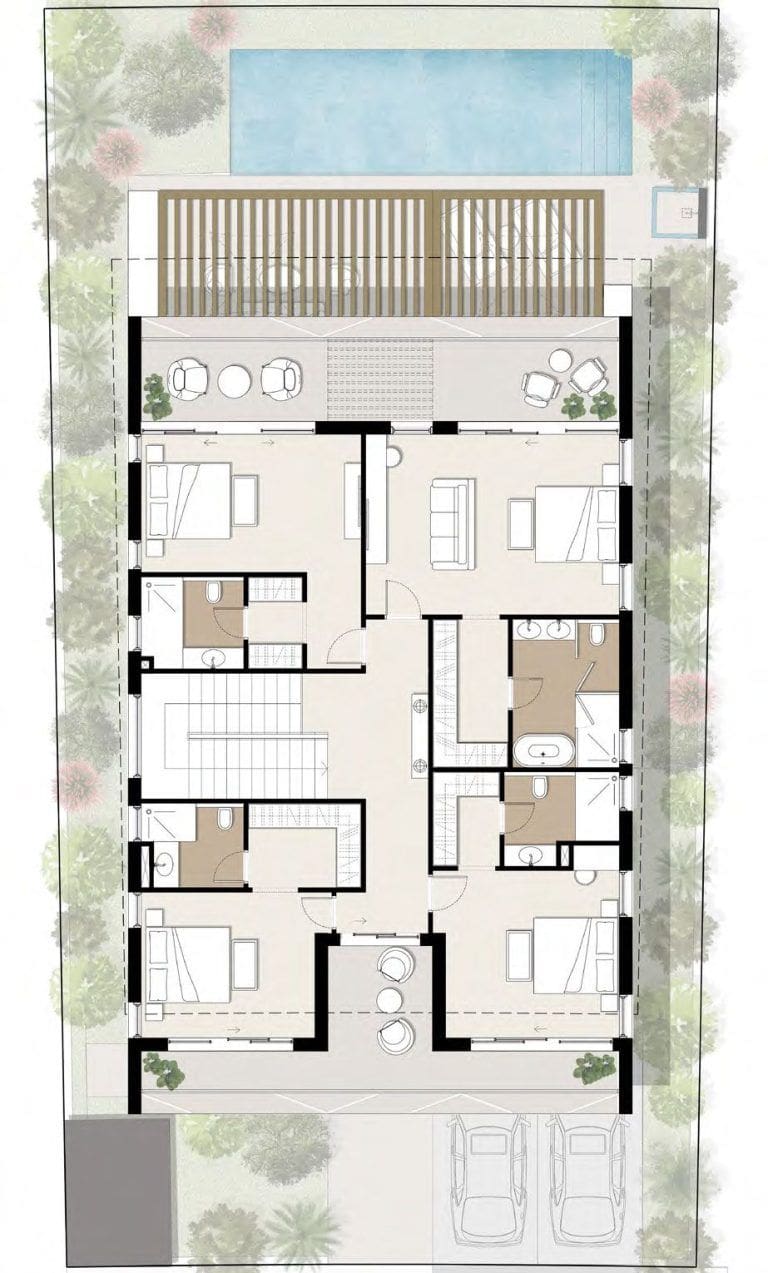 À Al Naseem, l'architecture des villas est créée dans un style de type art nouveau ou californien. Chaque résidence dispose d'une piscine, d'un coin salon, d'une grande terrasse et d'un parking pour deux voitures.