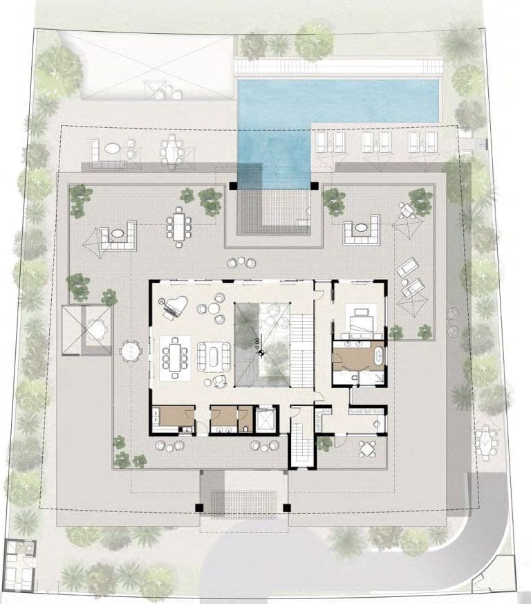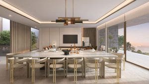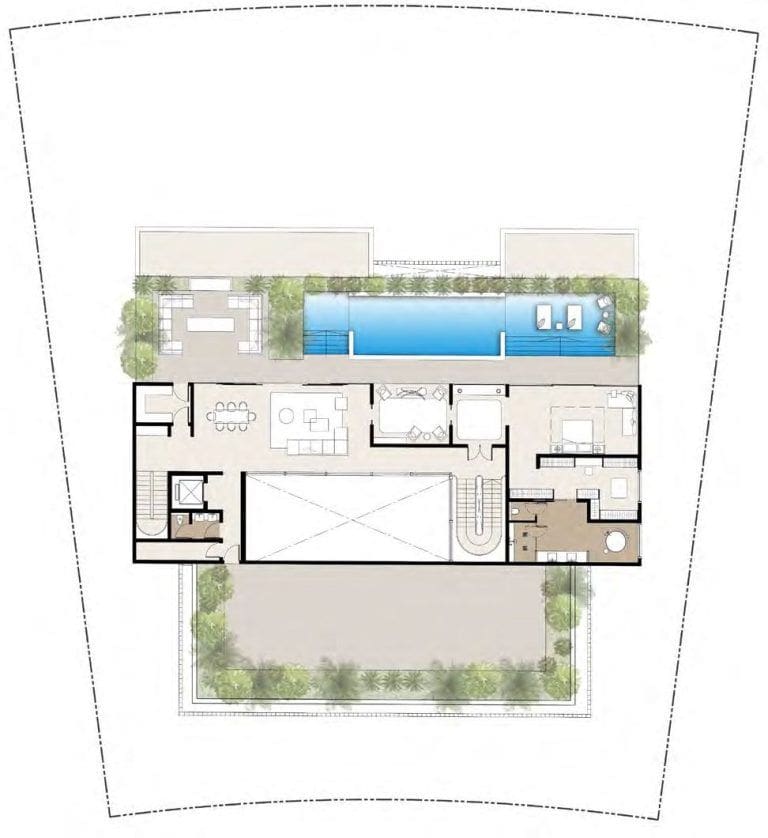 Votre spacieuse piscine à débordement, équipée de chaises longues, est idéalement placée pour vous permettre d'admirer les couchers de soleil et de profiter de la vue sur l'horizon d'Abu Dhabi. Vous trouverez également des salons intérieurs et extérieurs, des jardins verdoyants et l'accès à une plage de sable bien entretenue. Sur le territoire de l'île, les résidents auront accès à de nombreuses commodités, dont :