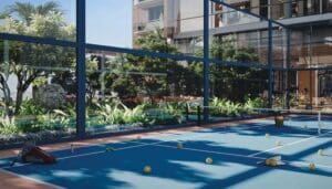 Solena dispose d'un terrain de padel innovant qui peut également servir de terrain de basket ou de football, réservable via une application mobile.