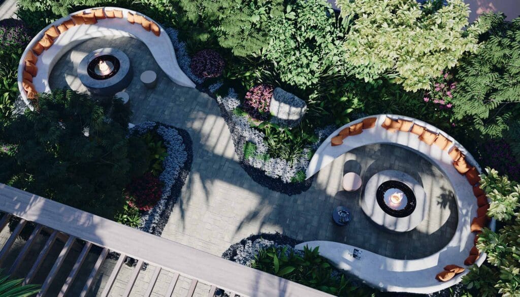 Une piscine à débordement de 25 mètres de type resort est la pièce maîtresse du luxueux espace de loisirs de Solena, avec ses chaises longues encastrées, son jacuzzi et sa piscine séparée pour les enfants.