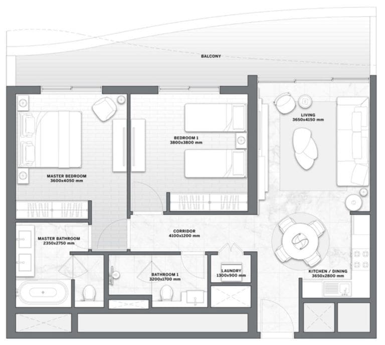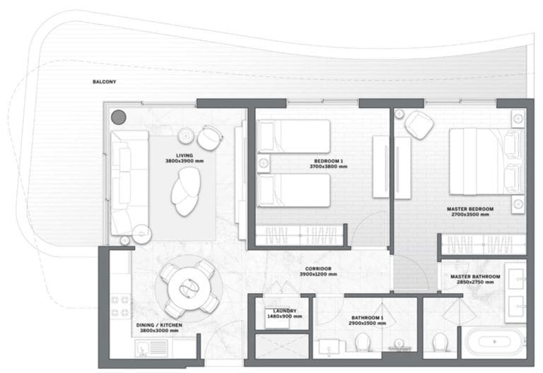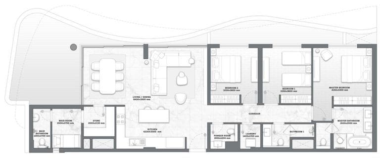 Le projet se compose de deux bâtiments de 9 étages, qui abritent 244 somptueuses résidences de 1 à 3 chambres. La superficie des appartements varie de 60 à 194m2. Tous les logements sont dotés de fenêtres allant du sol au plafond et d'au moins un balcon. Les résidents pourront profiter d'une superbe vue sur l'océan Indien et d'un magnifique cadre naturel d'une incroyable variété depuis le confort de leur résidence.