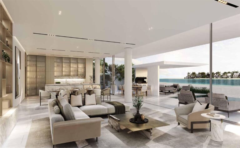 The Beach Collection par Nakheel Properties propose des villas de trois étages avec 5 à 6 chambres, avec des superficies allant de 680 à 784m2. Dex styles de façades sont disponibles.