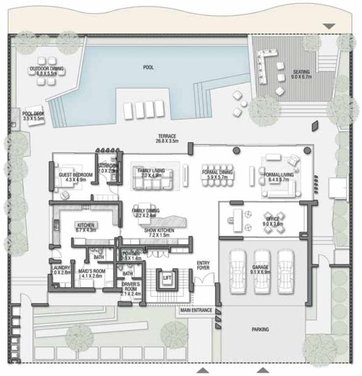 Vous pourrez choisir des villas côté rue ou en bord de mer. Les commodités comprennent des piscines privées avec des espaces de détente, des terrasses et des salons sur le toit, des balcons, des salles à manger extérieures, des espaces barbecue, des salles d'eau, des buanderies, des espaces de rangements, des placards, des cuisines témoins, des salles pour les chauffeurs et le personnel, des ascenseurs et des garages. Certaines résidences disposent de bureaux et de salles de réunion.