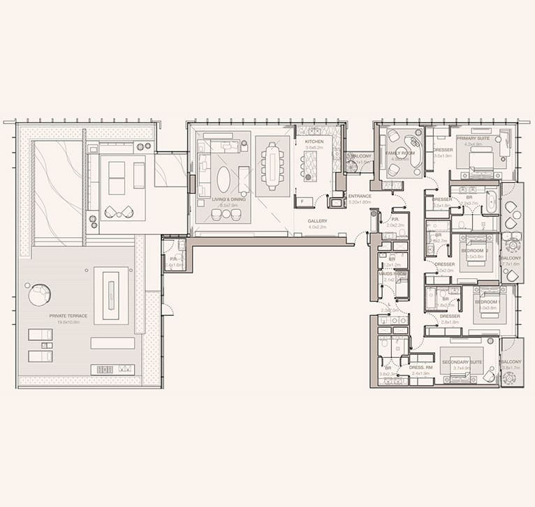 Le projet propose des appartements conçus avec soin, de 1 à 4 chambres, incarnant l’art de vivre luxueux.