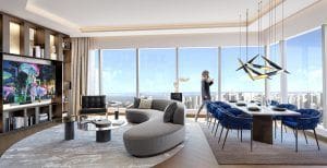 SO/ Uptown Dubai Hotel & Residences est un développement unique en son genre au Moyen-Orient réalisé par DMCC, qui est l’une des principales zones franches internationales, en collaboration avec la marque hôtelière mondiale, Accor Group. Le complexe de 81 étages situé à Uptown Dubai, DMCC, comprendra 22 étages de bureaux de catégorie A et 227 SO/ Résidences non meublés répartis sur les 28 étages supérieurs, à savoir des appartements de 1 à 3 chambres, des duplex de 2 chambres et seulement deux penthouses de 3 chambres à mi-étage.