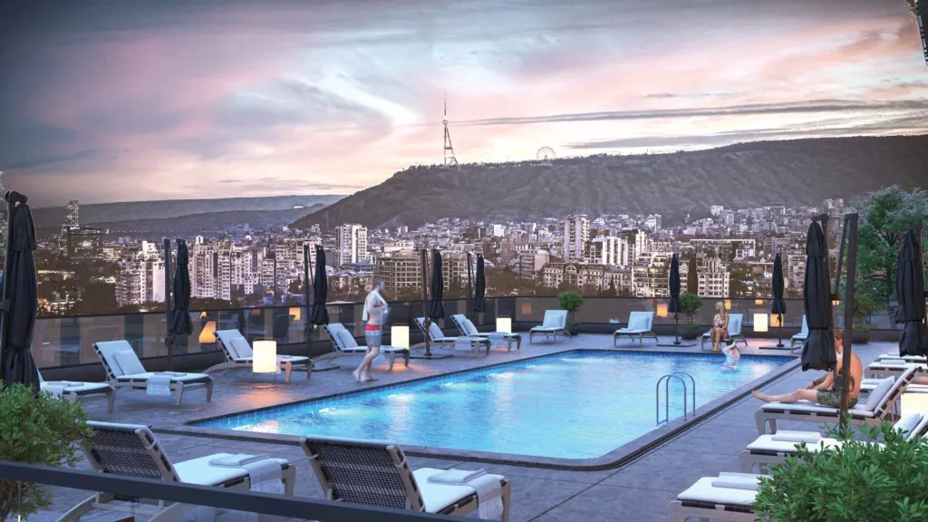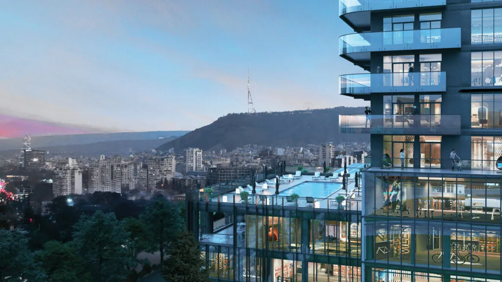 Premium studios and apartments in Tbilisi's business centre with panoramic city views, 1 minute from Heroes Square. The project features a large business cluster, retail space, and a comprehensive range of amenities. Projected rental yield — 12.7%.