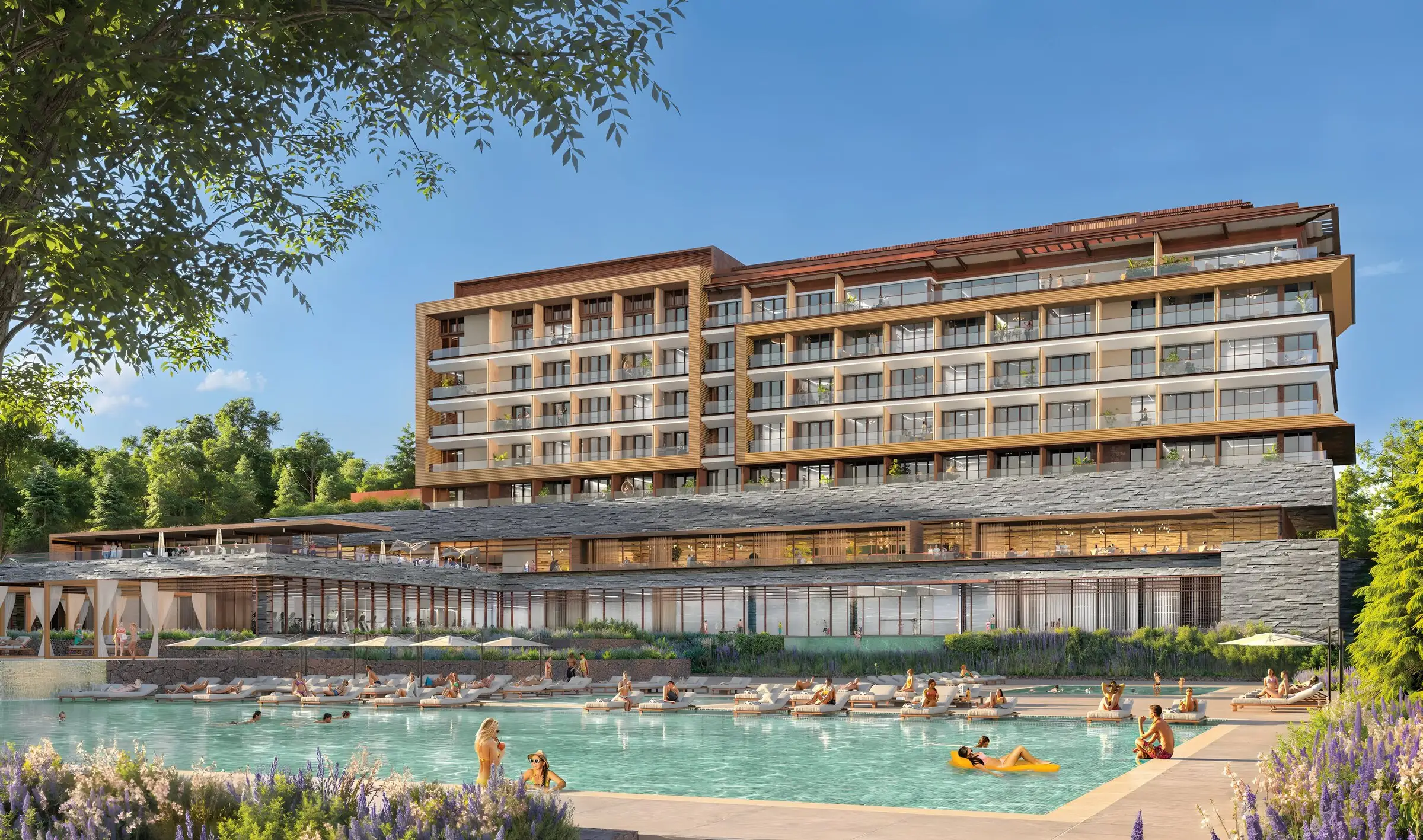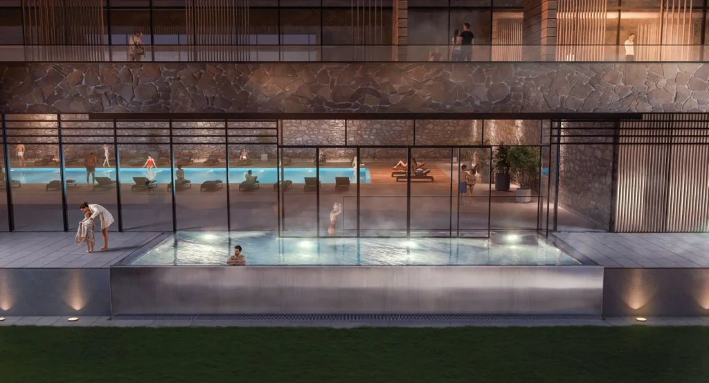 Sioni Lake Resort & Spa delivers premium resort living in every season: a 3,000 sq.m spa, aquapark and outdoor pools in summer, an ice rink and thermal infinity pool in winter. The resort offers spaces and amenities for every taste — from a ballroom for 550 guests, amphitheatre and five restaurants to a helipad, zipline and kids area. The scale and diversity of infrastructure ensure stable occupancy and a projected rental yield of 10% annually.