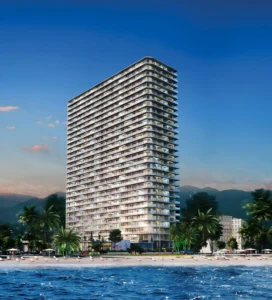 Studios from 32.8 sq.m, 1-bedroom apartments from 65.2 sq.m, 2-bedroom from 81.3 sq.m, and 3-bedroom from 118.3 sq.m. All residences are delivered fully furnished and equipped with appliances.