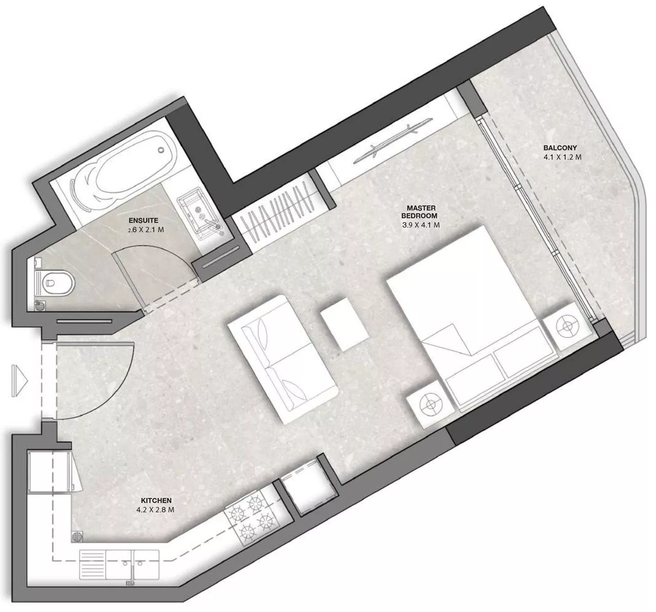 In total, there are 344 units within Bayviews. The property sizes stand at 417 sq. ft to 2,661 sq. ft. Each apartment will be equipped with a private balcony, where you will be able to take in the views of the Arabian Gulf and the Hajar Mountains. In addition, all the residences, except for the studios, will have a laundry room, a powder room and a corridor.