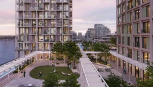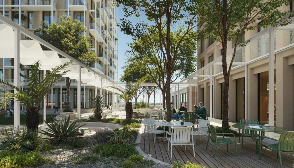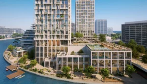 A waterfront promenade, flex workplaces, hosting rooms, outdoor cafes, Technogym-equipped fitness centers, infrared saunas, and plunge pools are just a few of the carefully chosen amenities that await residents.