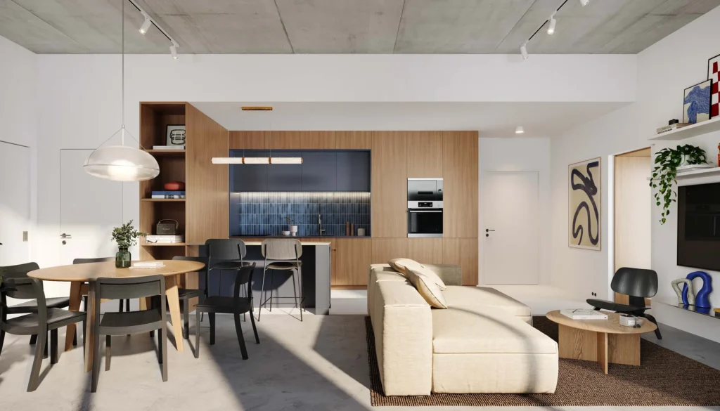 With carefully chosen accents, ENTA Mina combines futuristic minimalism, organic materials, and raw textures. With its well-planned common areas and varied ownership options, the complex inspires both privacy and inclusion.