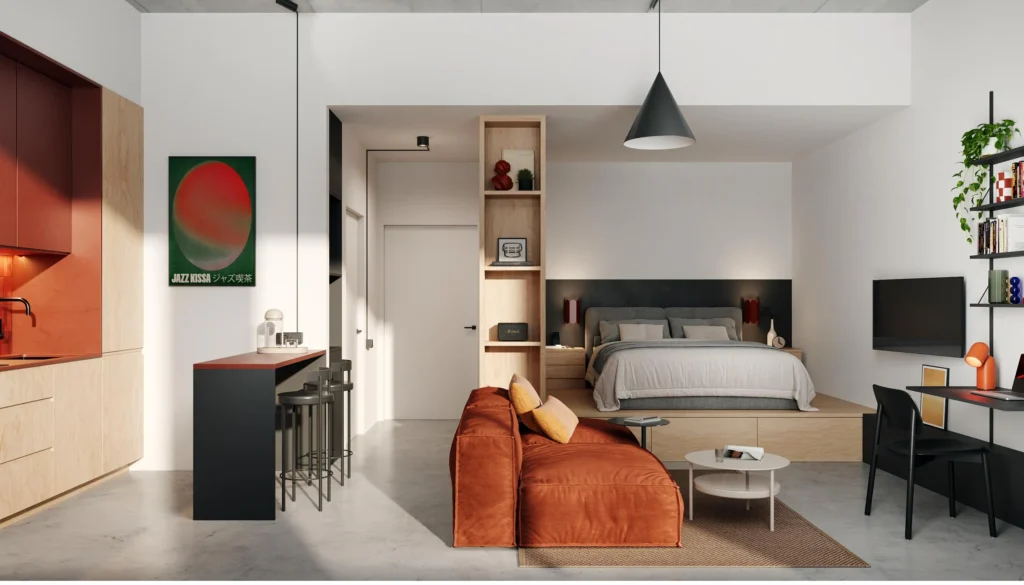 ENTA Mina offers 120 units comprising studios, 1-bedroom, and 2-bedroom apartments ranging from 348 sq. ft. to 1,418 sq. ft.