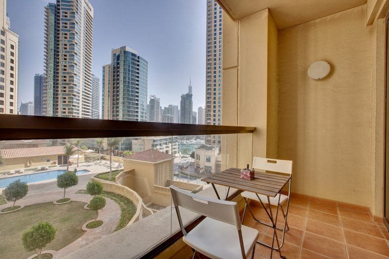 Rimal is a multi-building complex which comprises six towers on The Walk boulevard. The apartments in the residences are very modern and spacious, with floor-to-ceiling glass windows which provide a panoramic view of the sea and the Dubai Marina. Facilities for the residents of Rimal include gyms, shops, bars, restaurants and ground level swimming pools. There are numerous housing options available in this residential development, which include 1, 2, 3 and 4-bedroom apartments. The annual rental price of a 1BR apartment in Rimal is AED 70,000 (USD 19,000). Daily rent can be charged at a minimum of AED 250 (USD 70) per day.