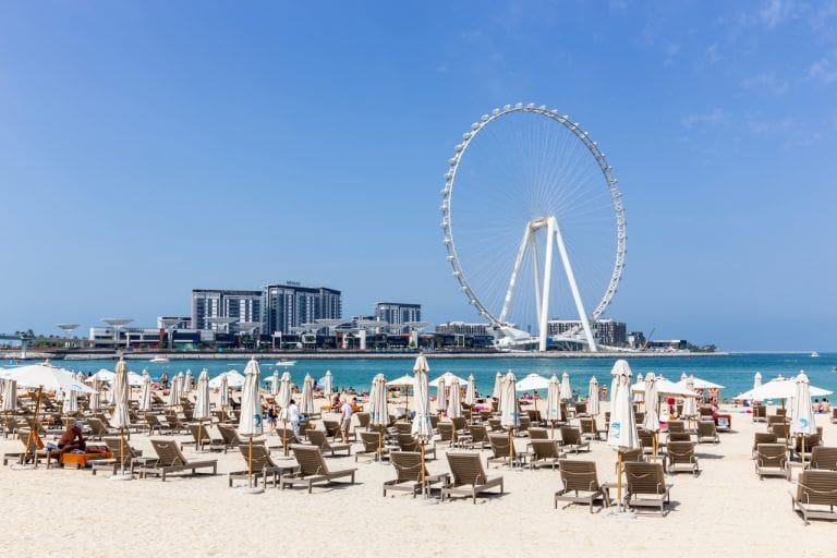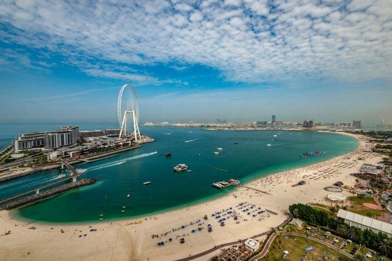 Jumeirah Beach Residences is connected with the man-made Bluewaters Island via a 265-meter pedestrian bridge above the sea This waterfront area features beaches, two luxury hotels and over 200 retail and dining venues. Bluewaters Island is home to the immensely popular Ain Dubai, which opened in late 2021. Ain Dubai is the world’s largest Ferris wheel, offering its passengers the most incredible views of the Burj Al Arab, the Burj Khalifa, Palm Jumeirah and Dubai Marina. Another popular hotspot on the island is Caesars Palace, the first one in the UAE, and the second one in the world after Las Vegas. The enormous hotel offers a range of watersports, pool and beach activities, a spa, as well as 12 bars and restaurants.