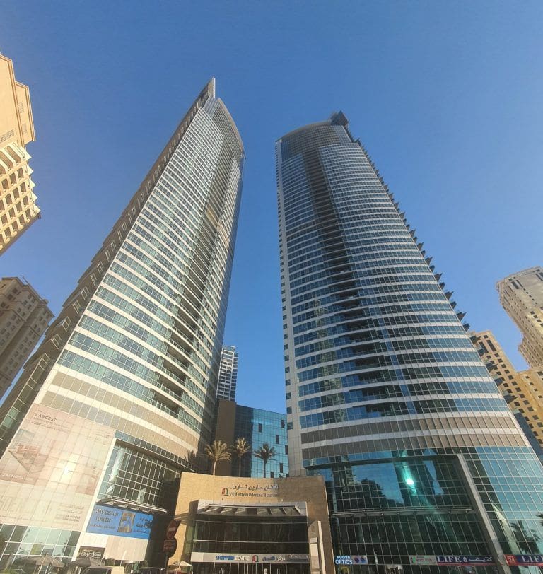 Al Fattan Marine Towers is an apartment complex in Jumeirah Beach Residence (JBR), a waterfront community located in Dubai Marina. It consists of two separate 50-storey skyscrapers: Al Fattan Tower and Oasis Beach Tower. The complex is located near the coastline, just a two-minute walk away from the beach.