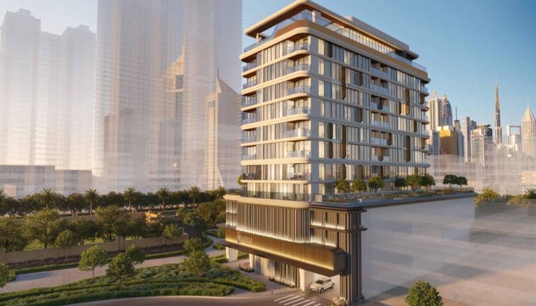 Elmora by Neoterra in Jumeirah Garden City, Dubai grants 85 fully furnished 1–2 bedroom apartments with Versace-branded interiors, Juliet balconies, and views of the Burj Khalifa and Dubai Frame. Residences include smart-living features such as home automation for lighting and AC, audio door entry, and energy-efficient finishes. Set in a prime location surrounded by lush landscaped greens, the tower presents rooftop infinity pools, podium gardens and other resort-style aminities. Prices start from AED 1.30M, with handover in Q1 2028.