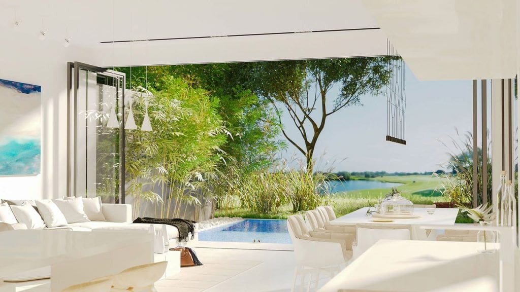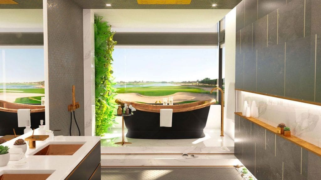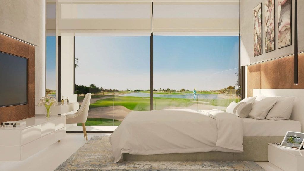 Jumeirah Luxury is a residential complex located in Jumeirah Golf Estates, Dubai. The community is ideal for golf enthusiasts since it is situated next to the famous Fire and Earth golf courses, which host the DP World Tour Championship. There are a total of 291 residential units, including three- to five-bedroom villas and townhouses that were designed using a modern architectural style. Units have panoramic windows that offer beautiful views of the surrounding area. Properties were built on the Championship Fire Course and have open-plan kitchens and luxurious finishes. Three-bedroom villas have a minimum size of 178 sq. m (1,918 sq. ft.).