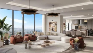 Prices start from AED 2.2M for 1BR apartments, with higher-end 3BR apartments and penthouses priced proportionally based on size and views.