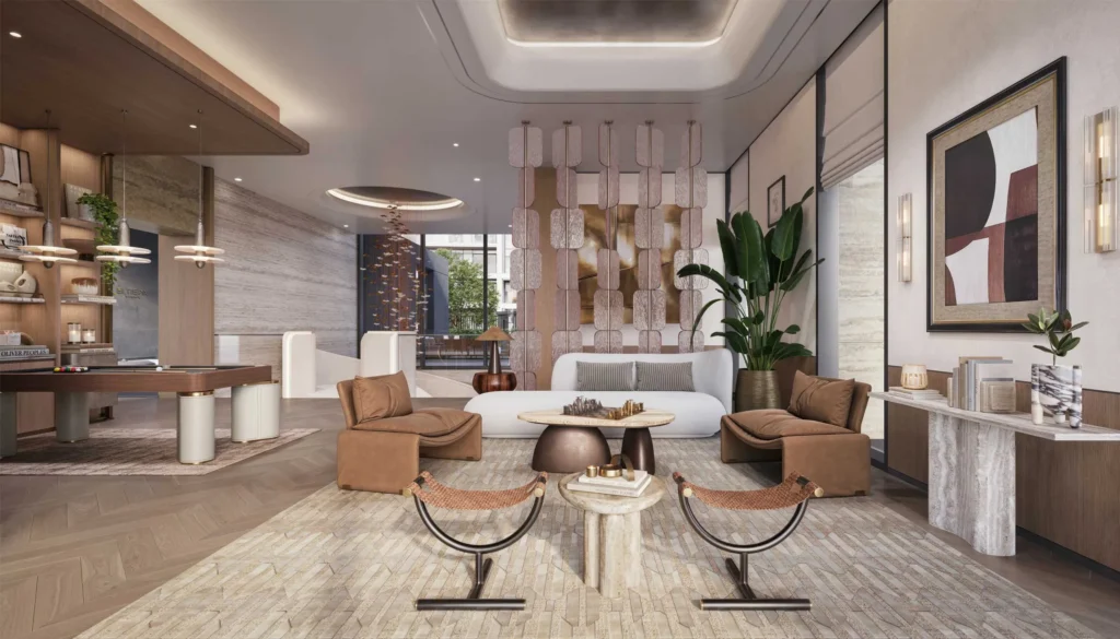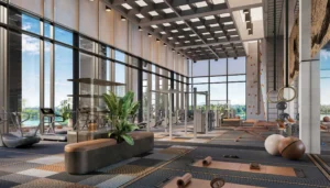 Flexible work zones with private meeting rooms, podcast studios, and work pods, designed for residents who want a productive environment within the community.