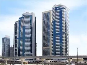 Jumeirah Lake Towers (JLT) is a community set along the Gulf Coast where you can live, work and play. The area is built up with 87 towers consisting of apartments, offices and retail outlets, located around three lakes and a park area of 55,000 sq. m (590,000 sq. ft). The water bodies and landscaped areas of JLT cover a total of 730,000 sq. m (7,900,000 sq. ft). In total 80 towers are located around the lakes, and 7 are on the waterfront overlooking the island of Palm Jumeirah. The buildings range in height from 35 m to 45 m.