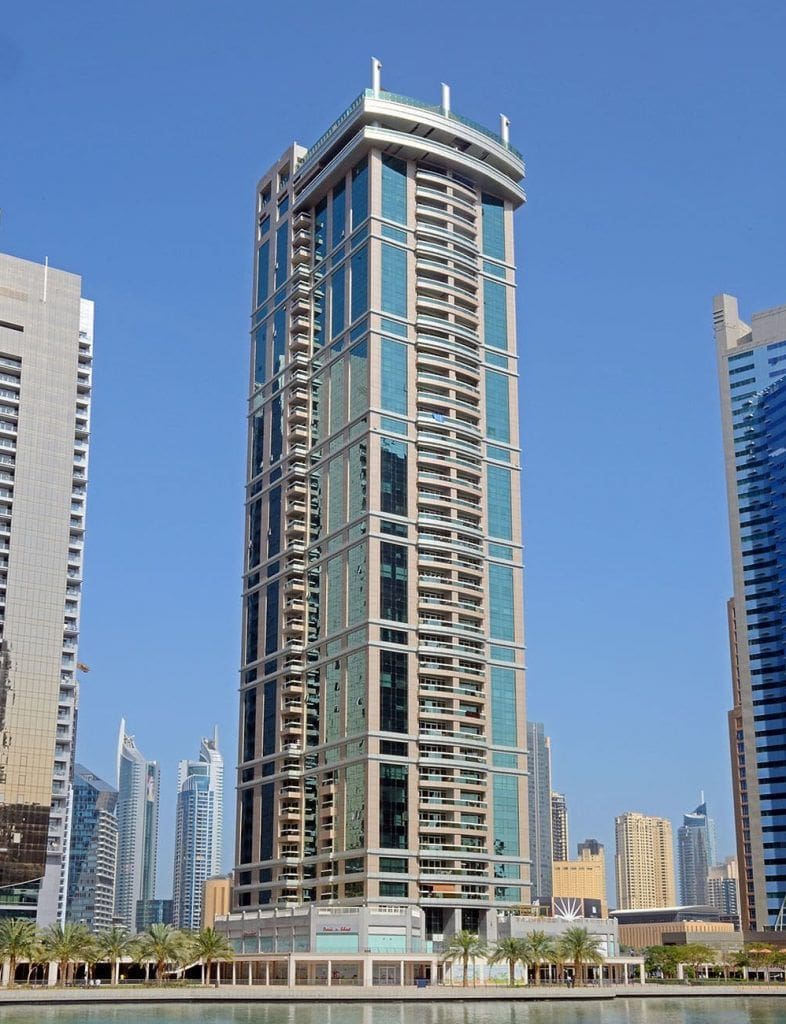 Al Shera Tower is a 41-storey apartment complex in Cluster E of Jumeirah Lake Towers. The building has one, two, and three-bedroom apartments, as well as two penthouses with five bedrooms each. The project was developed by Saleh Mohd. Bin Lahej and commissioned in 2007. Al Shera Tower features indoor parking, high-speed elevators, and 24-hour security staff. There are also a variety of on-site amenities, including a fully equipped gym, swimming pool, sauna, and jacuzzi, as well as event space for hosting banquets and private events. The building’s first floor includes restaurants, supermarkets, and other retail outlets.