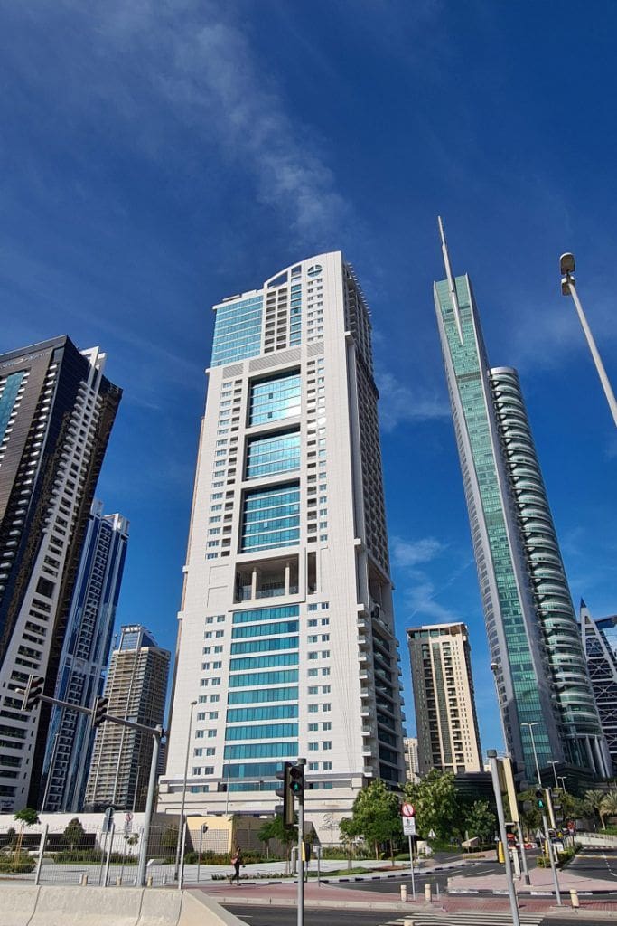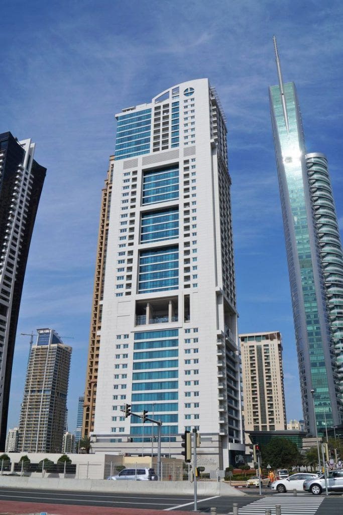 Bonnington Tower is a 40-story residential complex located in Jumeirah Lakes Towers, Dubai. Commissioned in 2008, the project was developed by Bonnington Hotels Ltd, and the architectural design was implemented by M3ar Consulting Engineers. The development is part of JLT Cluster J. Properties include one- to three-bedroom serviced apartments and hotel rooms that have a minimum size of 685 sq. ft. Apartments are fully furnished and have balconies and panoramic windows that overlook the surrounding area. Units also have kitchens with appliances, bathrooms with modern sanitary fixtures, and bedrooms with built-in closets.