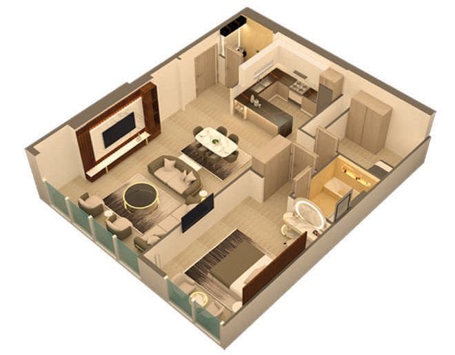 One can select a suitable property from an array of studios and 1–3 bedroom apartments.