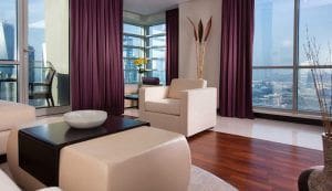 The Pullman Hotel, by Accor, is suitable for business travellers and those who want to relax in one of the best areas of Jumeirah Lake Towers in Dubai, an area known for its ultra-modern skyscrapers and infrastructure. Apartments and suites offer residents a high level of comfort, and the area features many attractions and leisure activities, including the nearby Dubai Marina district and its famous landmarks. The Pullman Hotel’s construction took 10 years, from 2005 to 2015. The above-ground building has 34 floors featuring residential units, retail stores, restaurants, cafés, gyms, and recreation areas.