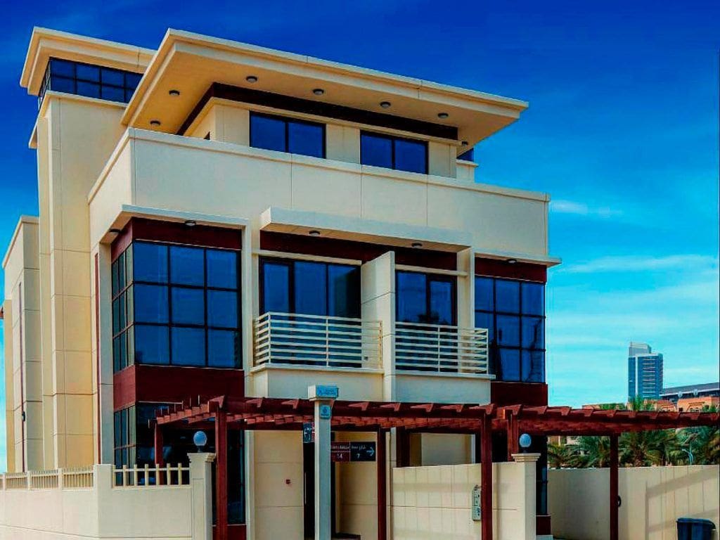 Atwaar Villas is a residential complex located in Jumeirah Village Circle, Dubai (District 14). Construction began in 2016, and townhouses are currently commissioned and in operation. Units were built in a “wall to wall” row. From the outside, the building appears to be one whole structure. Properties include two-storey townhouses that have four- to five-bedroom layouts. Residences have staff accommodations and open balconies with garden access.