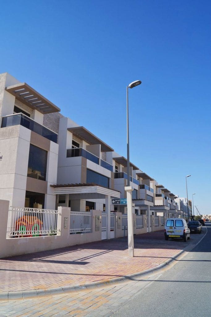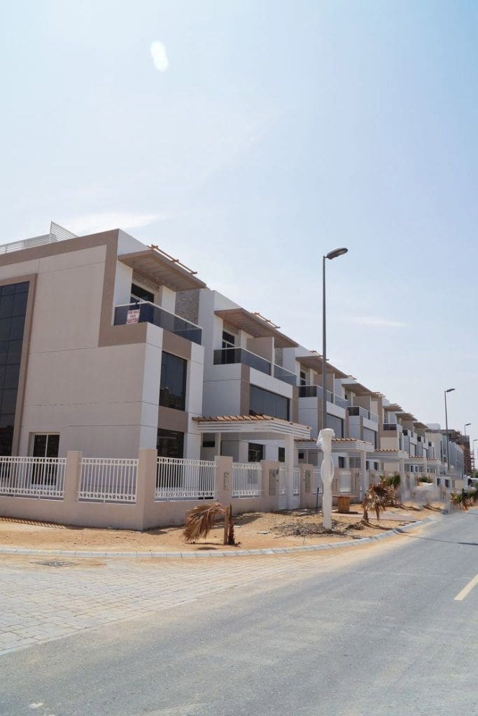 Golden Woods Villas is a residential community located in Jumeirah Village Circle, District 10, Dubai. Commissioned in 2016, the project was developed by QVC Holdings Ltd, and the architectural design was implemented by ADT Architectural Engineering Consultancy. There are a total of 13 two-storey villas that are equipped with modern amenities. Properties feature spacious living rooms, fitted kitchens, staff accommodations, built-in closets, ensuite bathrooms, parking, and rooftop terraces with beautiful views of the surrounding area.