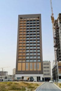 MILANO by Giovanni Boutique Suites is a 19-story residential complex located in Jumeirah Village Circle, Dubai. Properties include serviced studios and one- to two-bedroom apartments.